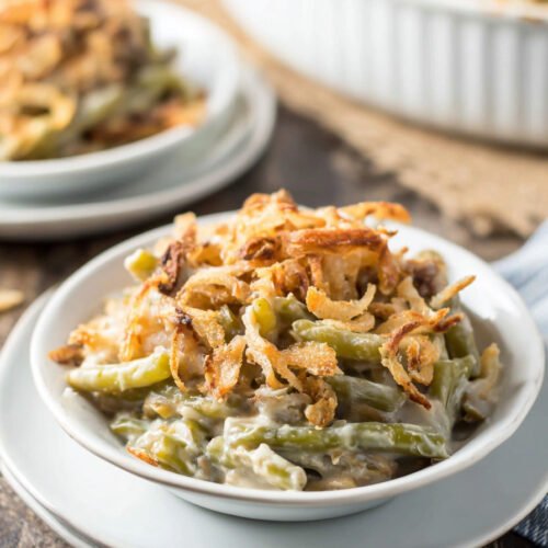 For the best results, use fresh green beans when possible, but don’t hesitate to rely on a canned green beans recipe version when you’re short on time. Just make sure to drain them well to avoid excess moisture in the casserole.