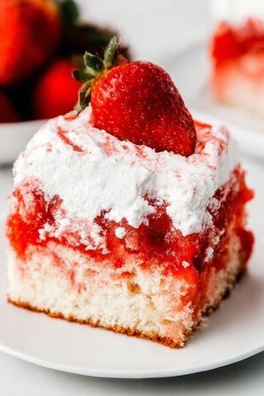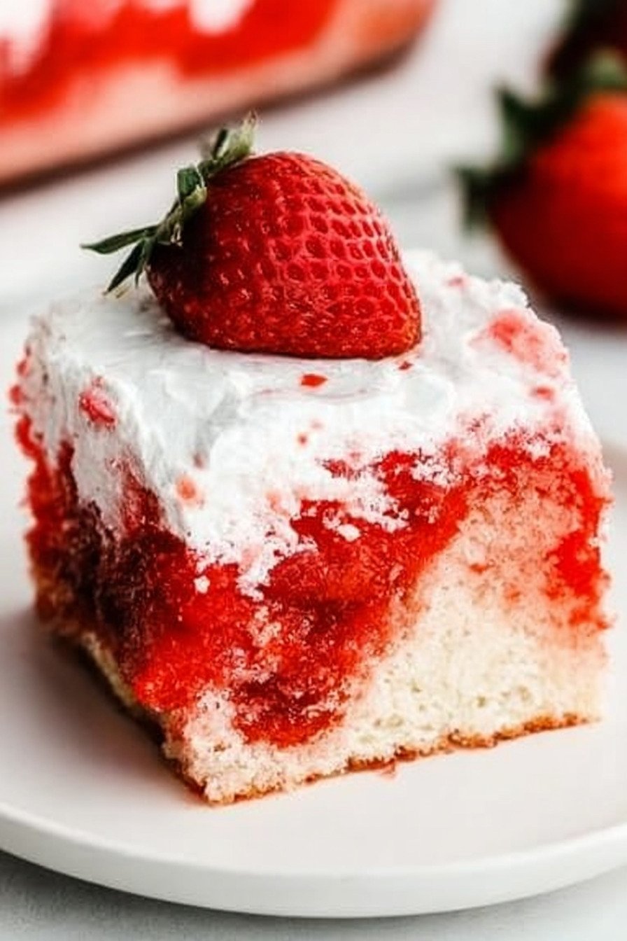 Another reason this strawberry poke cake recipe stands out is how versatile it feels. The basic method can inspire other fun ideas, from a lemon poke cake recipe to a lemon poke cake recipe jello variation, or even something richer like a cannoli poke cake recipe or red velvet poke cake recipe. Still, the strawberry version remains a classic because it is fresh, sweet, colorful, and always welcome on a dessert table.