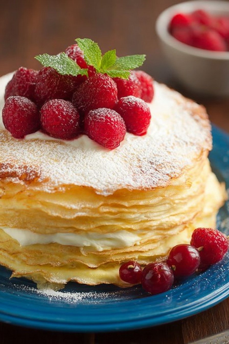 Because this recipe fits perfectly into Cakes Recipes, it brings together the visual appeal of a layered cake with the delicate texture of a classic crepe recipe. Each layer adds a lovely balance of softness and richness, and the filling makes every slice feel luxurious. Whether you are searching for an easy crepe recipe to expand your baking skills or hoping to master the best crepe recipe for entertaining, this dessert gives you both elegance and approachability.