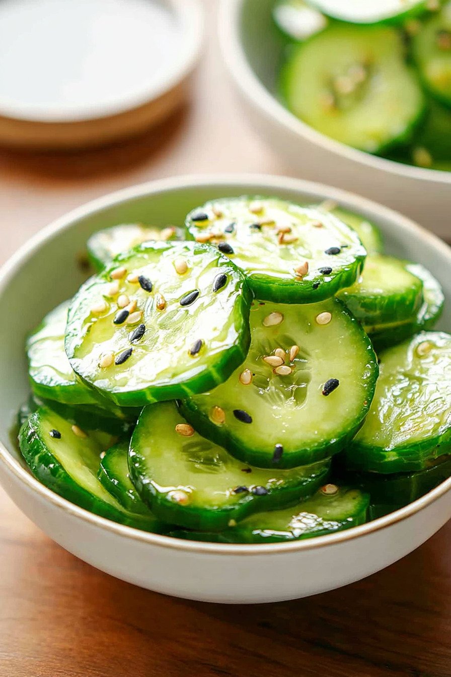 If you have leftovers, try serving them alongside grilled chicken, rice bowls, or simple seafood for an easy next-day meal. You can even add the cucumbers to a larger green salad for extra crunch and a boost of flavor from the tangy dressing.